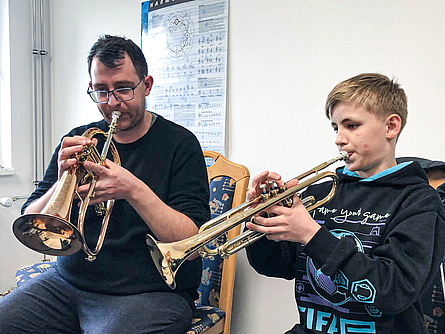 Ein gutes Gehör ist von Vorteil, dieses und andere musikalische Fertigkeiten wie Rhythmus und Notenlesen werden aber auch im Unterricht vermittelt. Zahnspangen sind in der Regel unproblematisch. Auch hier gilt: regelmäßiges Üben führt zum Erfolg und zur Freude am Instrument. Der Unterricht findet als Einzelunterricht statt, kann aber gut auch als Zweiergruppe gehalten werden.