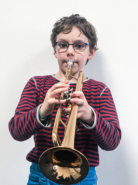 Bei Blechblasinstrumenten werden die Töne durch ein Kessel- oder Trichtermundstück erzeugt. Zu den Blechblasinstrumenten gehören Trompete, Posaune, Horn, Bariton, Tuba und Euphonium. Beginnen kann man die Trompete bereits mit 8 Jahren, für die anderen Instrumente sollte man mindestens 10 Jahre alt sein. Nach oben gibt es keinerlei Altersgrenze.