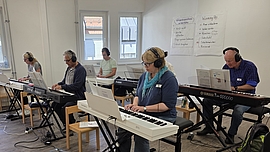 Der Klavierworkshop von Joachim Wagenhäuser richtete sich an Erwachsene ohne Vorkenntnisse, die das Klavierspiel ausprobieren, gezielt lernen oder ihr Kind beim Klavierspiel effektiv unterstützen wollten. Neben der Orientierung auf der Klaviatur wurden die wichtigsten Grundlagen für entspanntes Klavierspiel, ein Noten-Crashkurs, elementare Grundkenntnisse zum Thema Rhythmus sowie effiziente Übetechniken vermittelt. Zudem konnten die Teilnehmenden bereits erste Musikstücke ausprobieren. Der besondere Vorteil des Kurses ist, dass jedem Spieler während des gesamten Kurses ein eigenes Digital-Piano zur Verfügung steht und über Kopfhörer individuell darauf üben geübt werden kann.