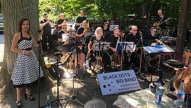 Über 30 Jahre besteht Black Dots und tatsächlich gibt es auch noch einen Mitspieler, den organisatorischen Leiter und musikalischen Mit-Leiter Gerhard Brunner, welcher die ganze Zeit dabei ist und, wenn er nicht dirigiert, auch mal zum Tenorsaxofon greift. Mit ihrem Namen spielt die Band auf Noten, eben schwarze Punkte an. Viele Auftritte hat es in der Gesamtspielzeit gegeben, darunter auf so renommierten Veranstaltungen wie dem Hessentag in Wetzlar, der Landesgartenschau in Gießen und in Fulda oder beim Jazzbrunch im Platanenhof in Bad Nauheim. Auch in Butzbach war und ist Black Dots regelmäßig zu hören, sei es beim Wein- oder Altstadtfest, im Forsthaus Butzbach, beim ortsansässigen Hessentag 2007 oder zur Entspannung der Radler der hr4 Mittelhessen-Radtour im Schlosshof. Neben Gerhard Brunner ist auch der Trompeter Martin Auer von der HR-Big Band Teil des Leitungsteams und maßgeblich zuständig für die Feinheiten der Bläsersätze.