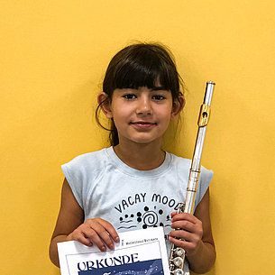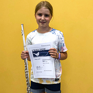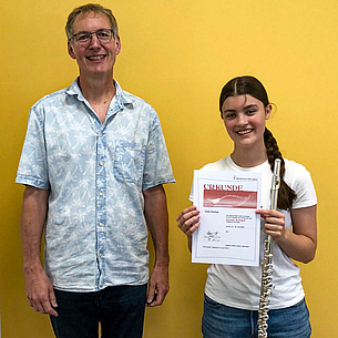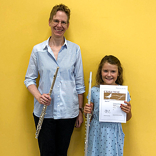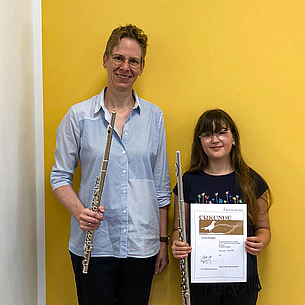 Ende Juni 2025 fanden zwei Instrumentenprüfungen an der Musikschule Butzbach statt. Diese erfolgen einmal jährlich und sind für die SchülerInnen freiwillig. Für viele ist die Teilnahme eine ganz besondere Motivation, ist die Atmosphäre doch eine andere als beispielsweise bei einem Konzert. Begonnen wurde mit der Querflötenprüfung, zu welcher sich 5 Schülerinnen angemeldet hatten. Von den nach Niveau unterschiedenen Prüfungsstufen, welche alle mit Vogelnamen benannt sind, waren je zweimal die Amsel und die Drossel mit Teilnehmenden aus dem Anfängerbereich sowie die bronzene Nachtigall mit einer fortgeschrittenen Schülerin vertreten. Mit viel Schwung wurden die Werke vorgetragen und die theoretischen Fragen nach Tonarten, Teilen der Flöte und Zuordnen von Notenwerten und ihren Pausen gekonnt absolviert. Ebenso das Blattspiel. Alle Teilnehmenden erhielten von der aus Martin Zörb, Julia Schelter und Marion Adloff bestehenden Jury ihre angemessene Urkunde.