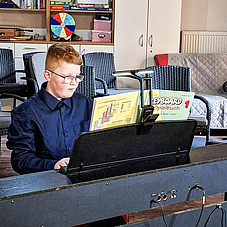 Das Ende der Vorstellung gestaltete Mats Herrmann auf dem Klavier mit einer Passacaglia von Georg Friedrich Händel. Hierbei handelte es sich um ein Werk mit mehreren Variationen, deren Vielfältigkeit Mats unterschiedlich ausführte und somit seine Musikalität unter Beweis stellte.